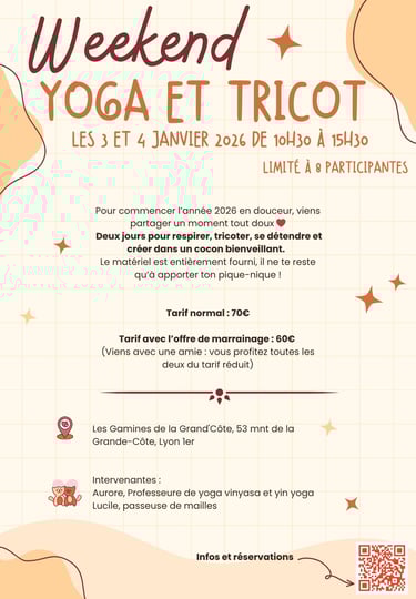 Aucune expérience tricot (ou yoga) n'est nécessaire, cette retraite est pensée pour les débutantes et les curieuses désireuses d'apprendre à leur rythme dans une ambiance conviviale et bienveillante.